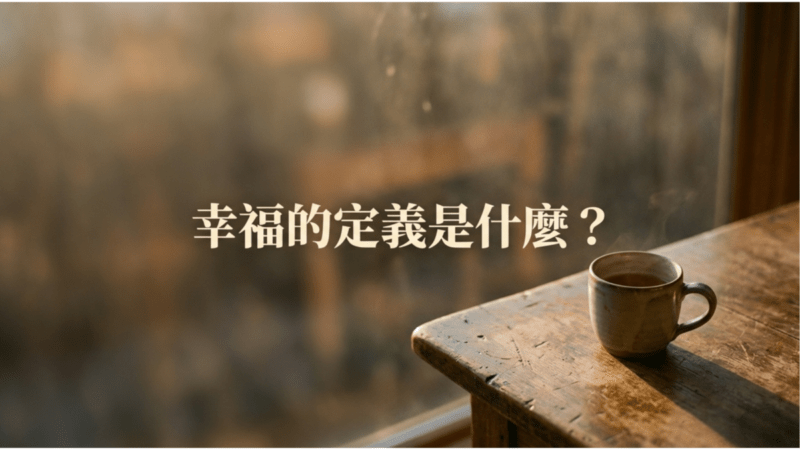 這種定義很重要,但我們今天不打算上課;我們比較想坐在一張很舊但很穩的木桌旁,一邊喝茶、一邊閒聊人生八卦:「你心裡的幸福,長什麼樣子?」