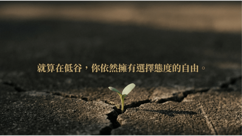 分享一段我很喜歡 Viktor Frankl 在《活出意義來》(Man’s Search for Meaning)這本書裡傳達的一個意念:即便身處最極端的困境,人仍然可以選擇自己的態度,可以選擇用什麼眼光看待正在發生的事情。