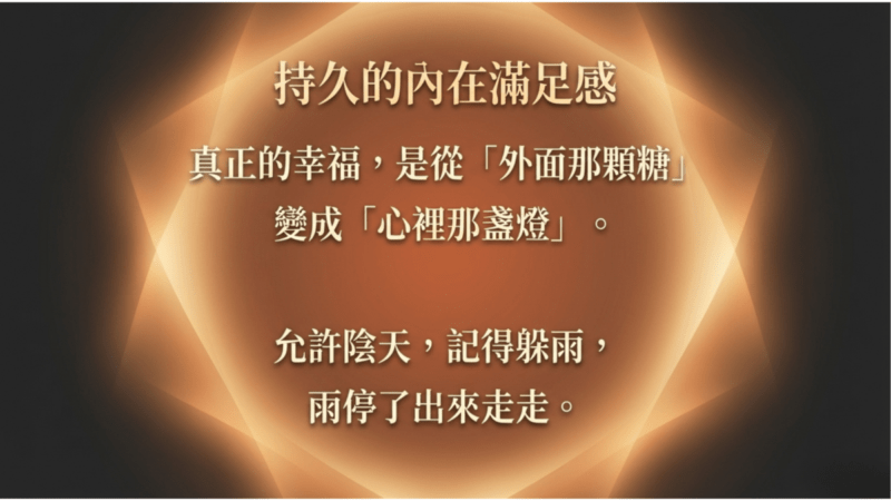 當你開始這樣過日子,你會發現,真正的幸福其實一直都不遠;它只是從「外面那顆糖」變成「你心裡那盞燈」而已。